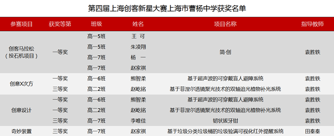 曹杨学子在第四届上海创客新星大赛中荣获佳绩
