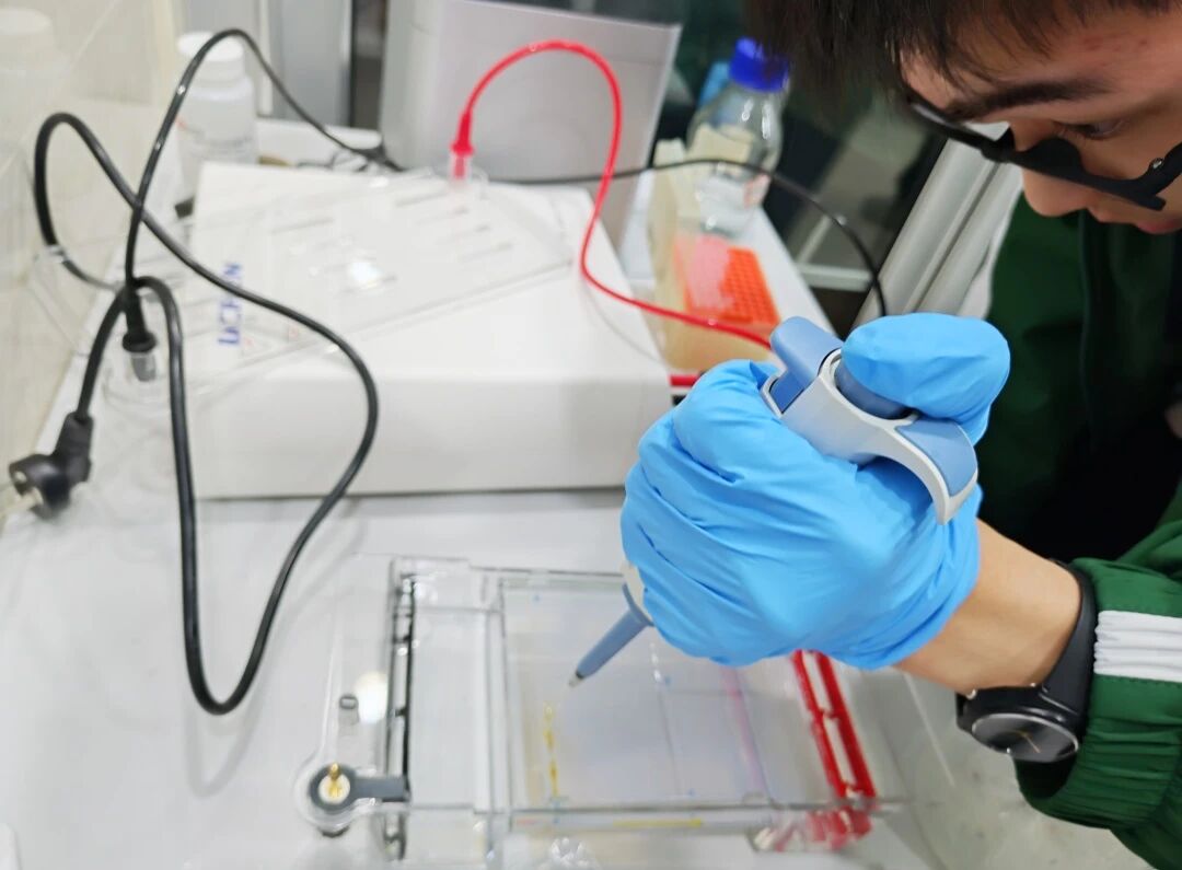 同学们化身“分子侦探”,利用PCR(聚合酶链式反应)扩增DNA的核心原理,对未知菌液样本进行盲测鉴定。从配置微量反应体系到制备琼脂糖凝胶,再到电泳跑胶,同学们在严谨的操作中捕捉到了代表植物乳杆菌(318bp)和大肠杆菌(166bp)的特异性条带,亲身体验了分子生物学的奥秘与严谨。