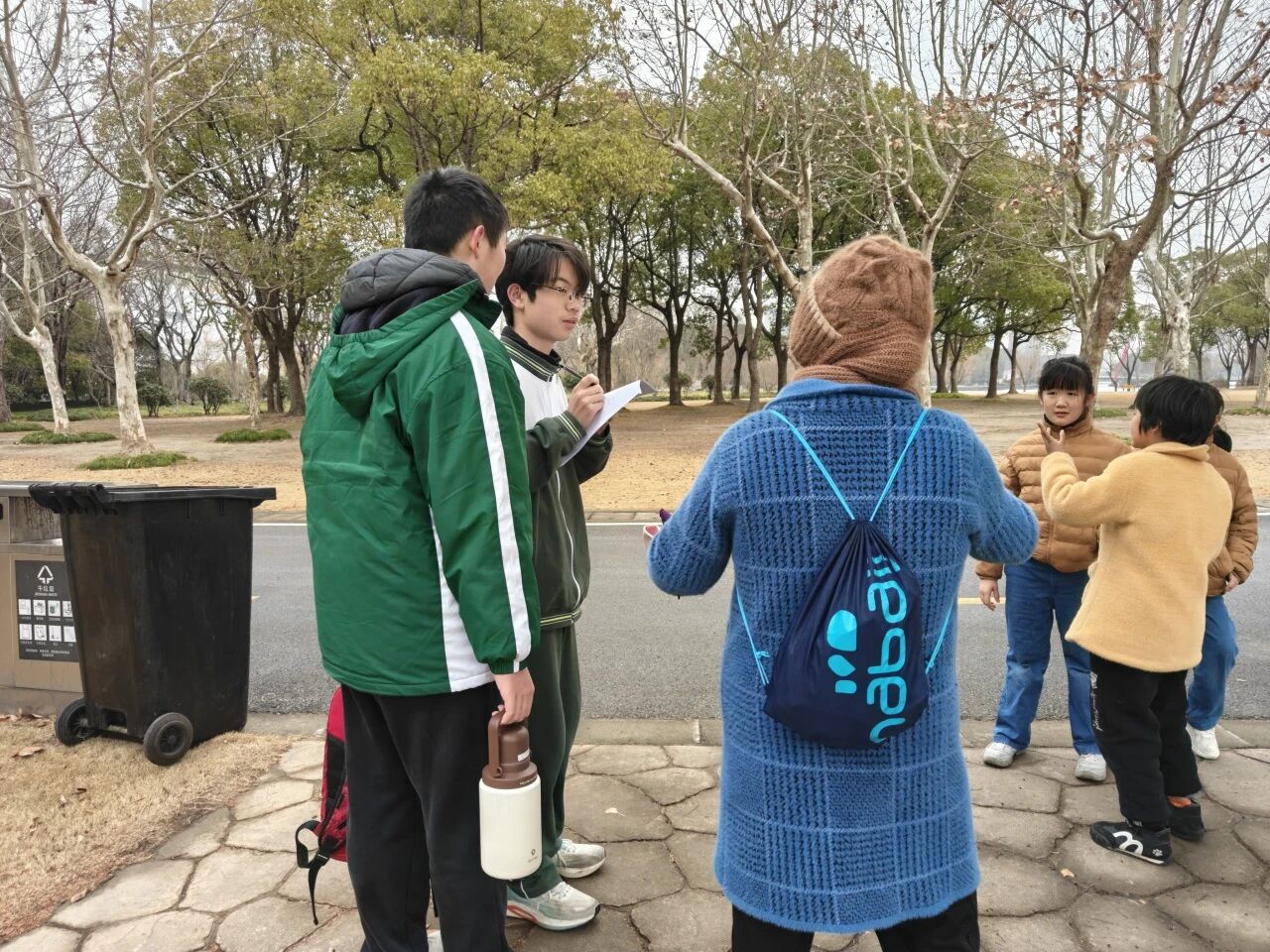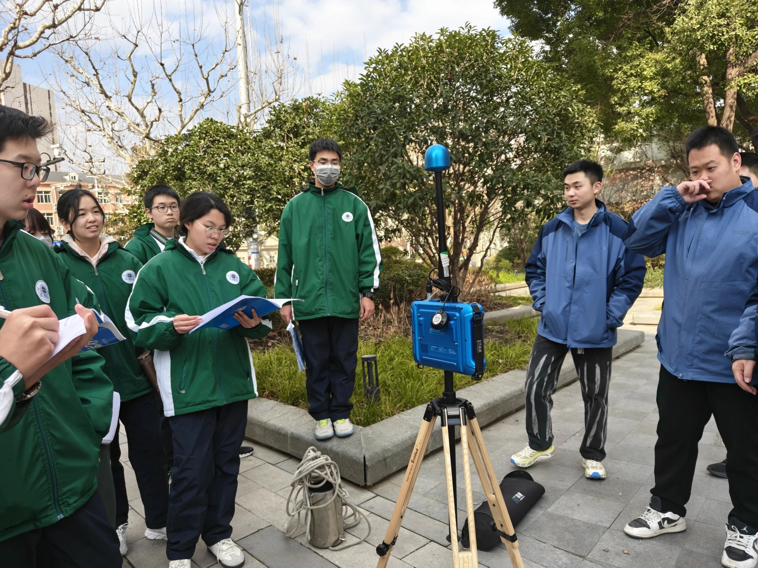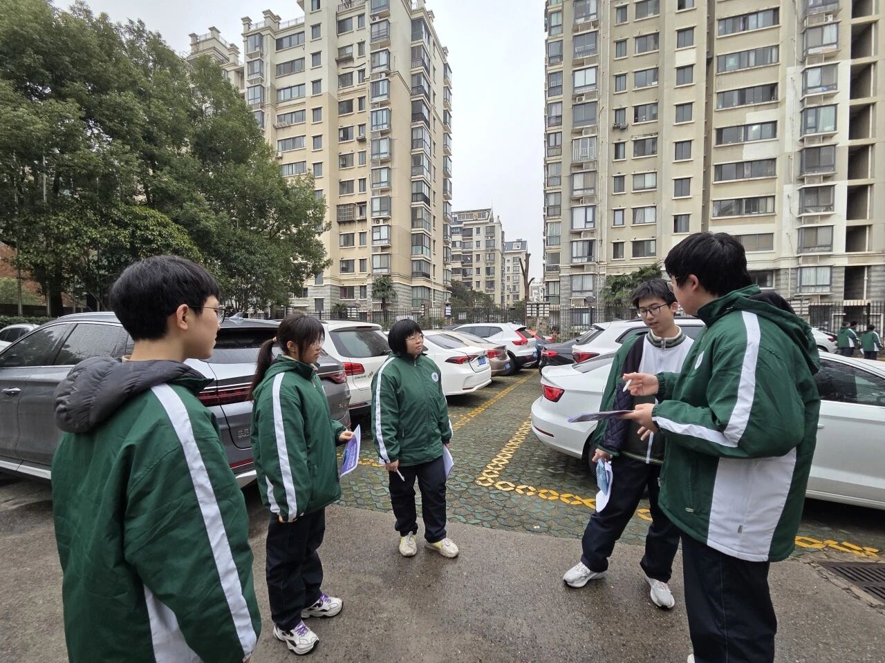 活动伊始,地理组老师带领同学们重温水循环原理,剖析城市化进程中地面硬化对雨水下渗的影响,明确校园积水的核心症结。师生共同赴汇智门实地勘察,结合去年绘制的积水地图,精准记录不透水建材、地形坡度等关键影响因素,完善校园积水档案。