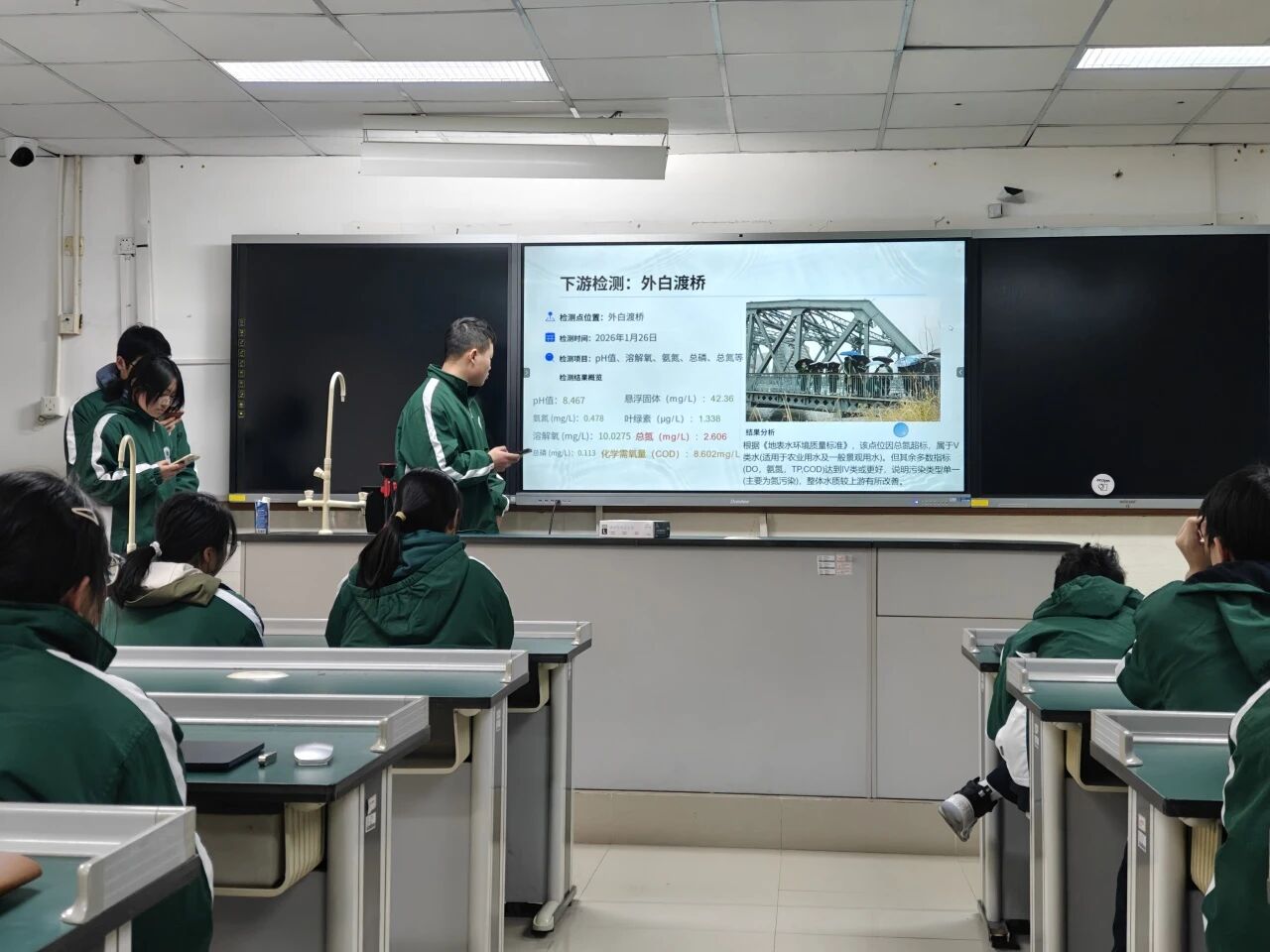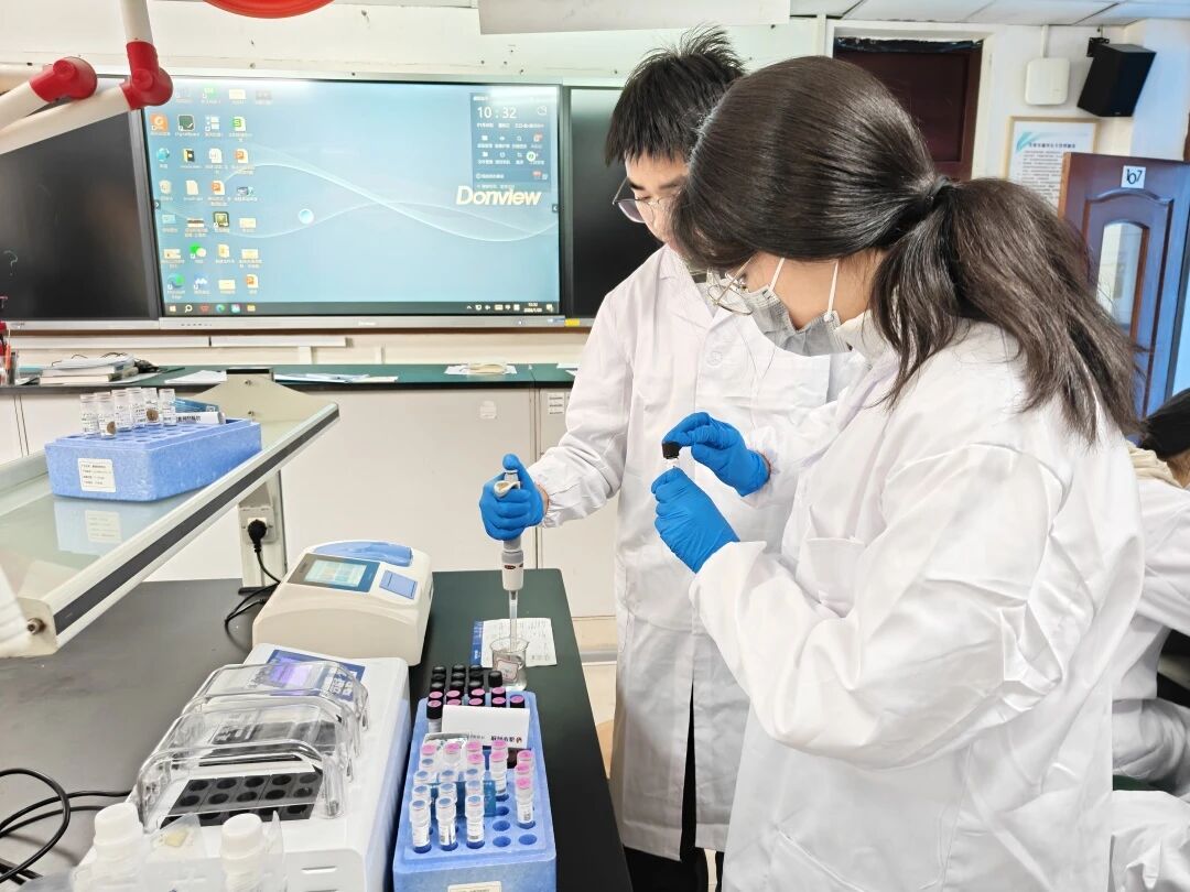 同学们运用所学习的实验操作,对采集的水样有条不紊地开展检测工作,在借助分光光度计、消解仪等实验仪器呈现数据的过程中,同学们逐渐建立严谨的科研态度,也很好地培养了团队默契,纷纷表示在此过程中懂得了数据对比等操作在科研中的重要作用,更希望将这份一丝不苟的态度带到未来学习生活中。