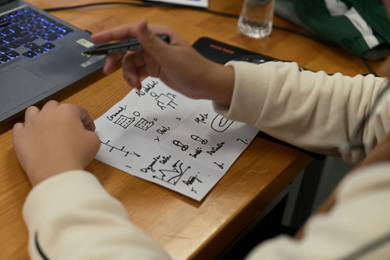 进入实战环节,同学们开始学习如何与AI高效协作。大家以“苏州河”为主题,学习撰写和优化提示词,并利用豆包的应用生成功能,快速生成了网页的初步原型。这个过程不仅让同学们体验了AI在创意实现上的强大能力,更锻炼了他们将抽象想法转化为具体指令的逻辑思维能力。看着AI根据自己的指令生成图文并茂的网页雏形,同学们收获了满满的成就感。