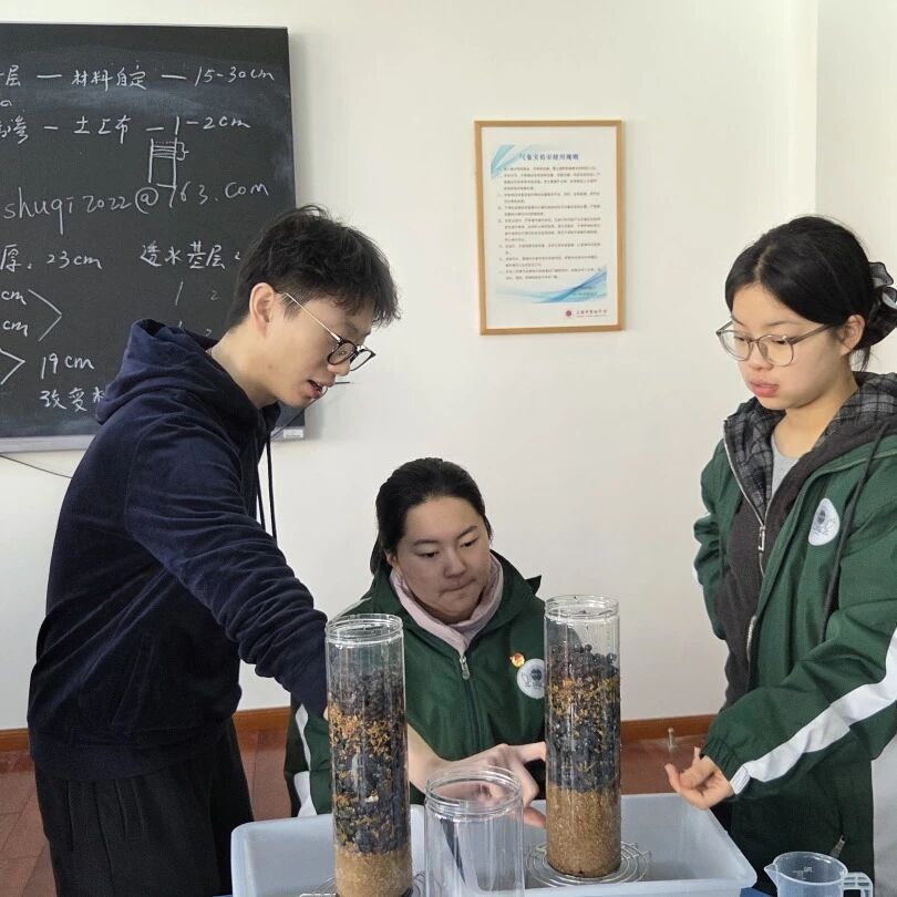 地理组聚焦校园汇智门雨天积水的问题,依据《上海市海绵城市建设技术导则(试行)》,开展以“透”为核心的透水铺装设计与实践活动。通过理论学习、实验探究与模型搭建,同学们将海绵城市理念转化为实际行动,为校园雨水管理优化提供了科学可行的解决方案。