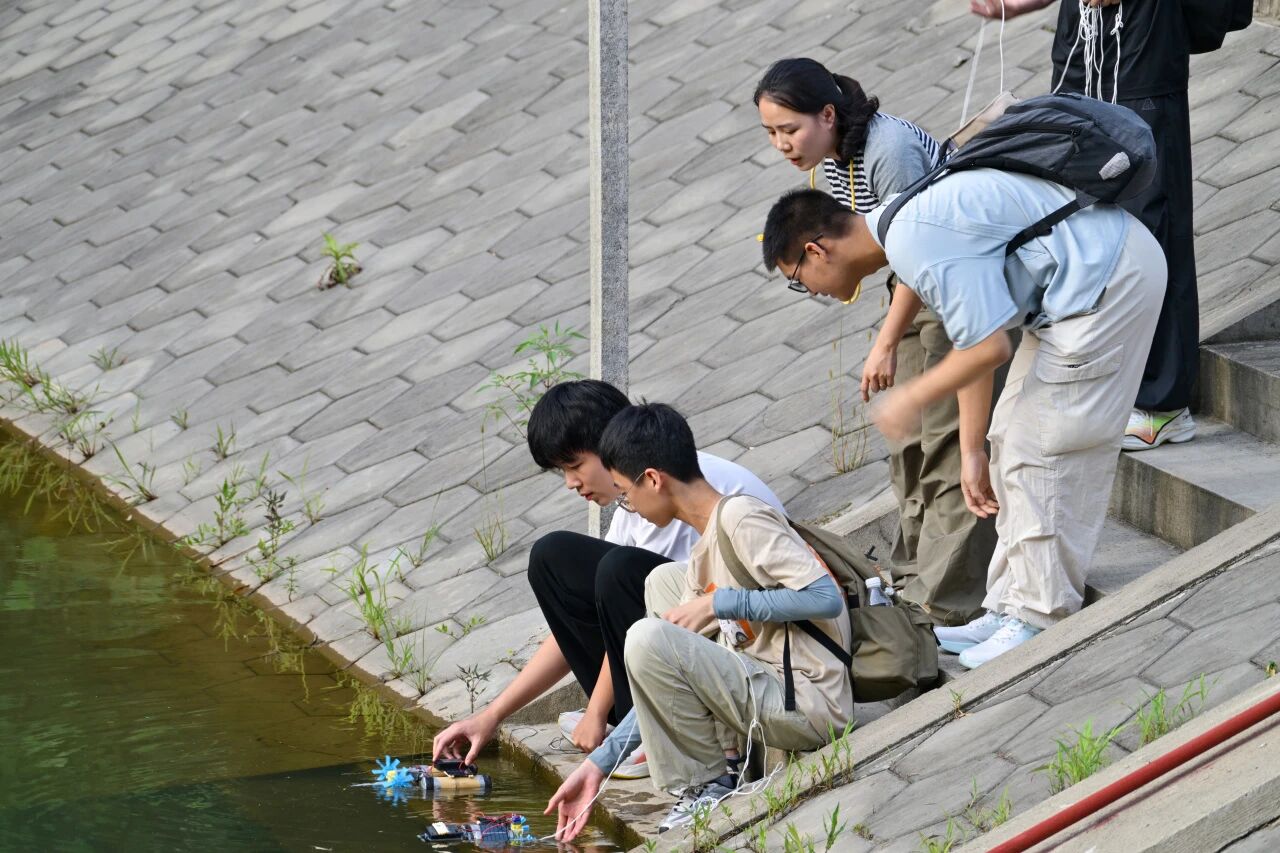 同学们就地取材制作竹筏,巧妙地利用竹管、竹条制成竹舟,并安装太阳能板与电机驱动小舟,将传统的水上运输工具与新能源技术有机结合,体验解决实际工程问题的乐趣。同学们还在水库中进行了竹筏竞渡,他们不仅决出了最佳竹舟,还在比赛中观察竹筏的结构及其前进速度的关系,真正做到在做中学,学中悟。