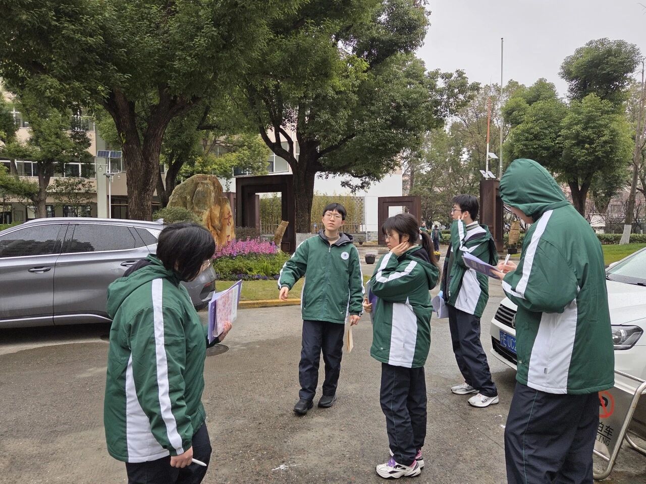 活动伊始,地理组老师带领同学们重温水循环原理,剖析城市化进程中地面硬化对雨水下渗的影响,明确校园积水的核心症结。师生共同赴汇智门实地勘察,结合去年绘制的积水地图,精准记录不透水建材、地形坡度等关键影响因素,完善校园积水档案。