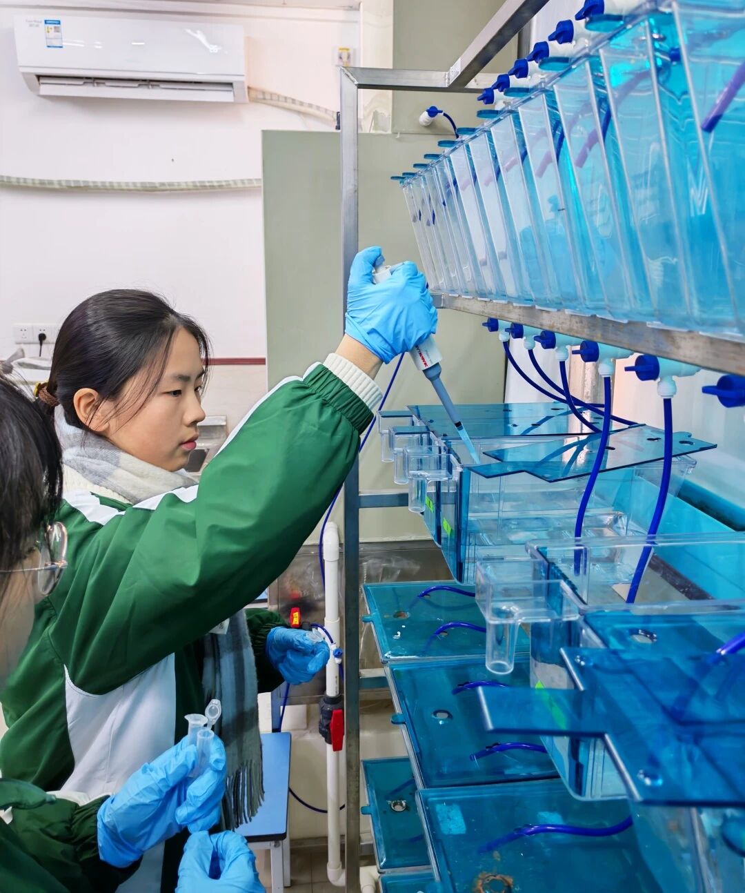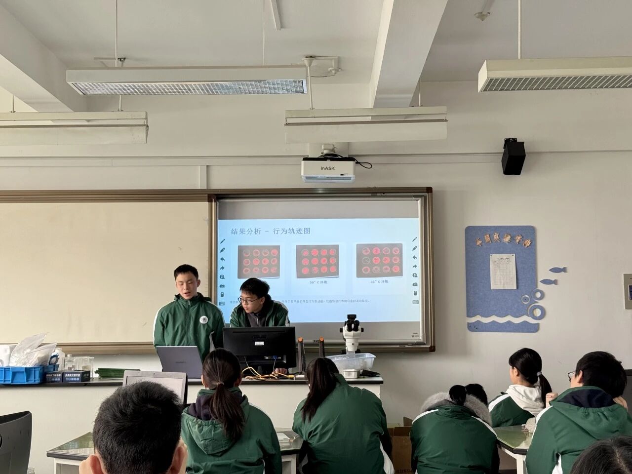 生物组以“‘鱼’菌共舞,寻找影响情绪的益生菌”为核心主题,通过“微观分子鉴定-宏观行为分析-AI数据赋能”的进阶路径,引导同学们从分子水平到个体水平,探究植物乳杆菌对斑马鱼焦虑行为的干预机制。
