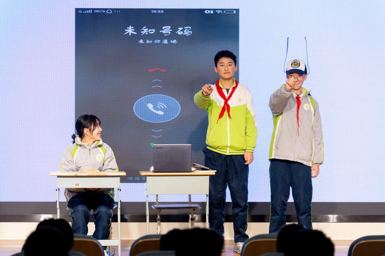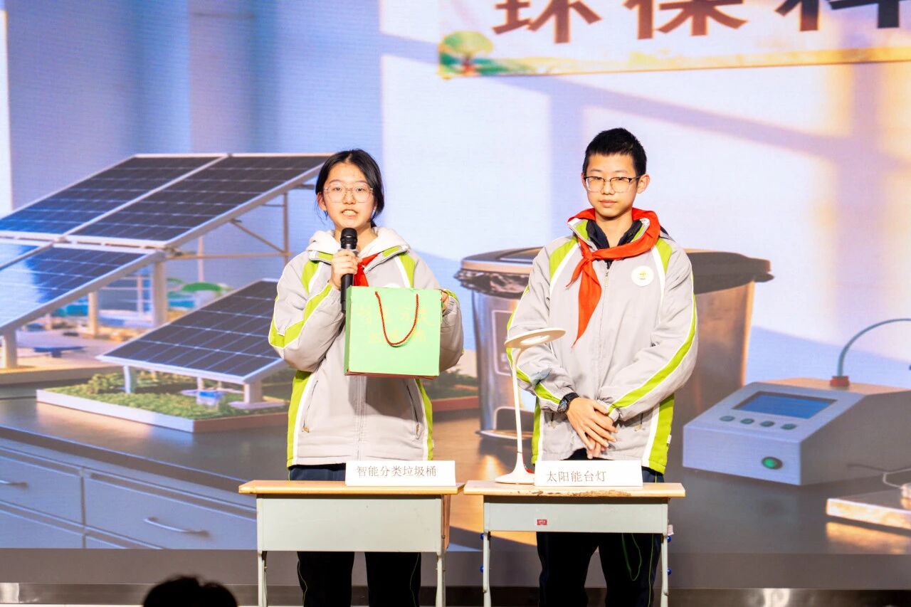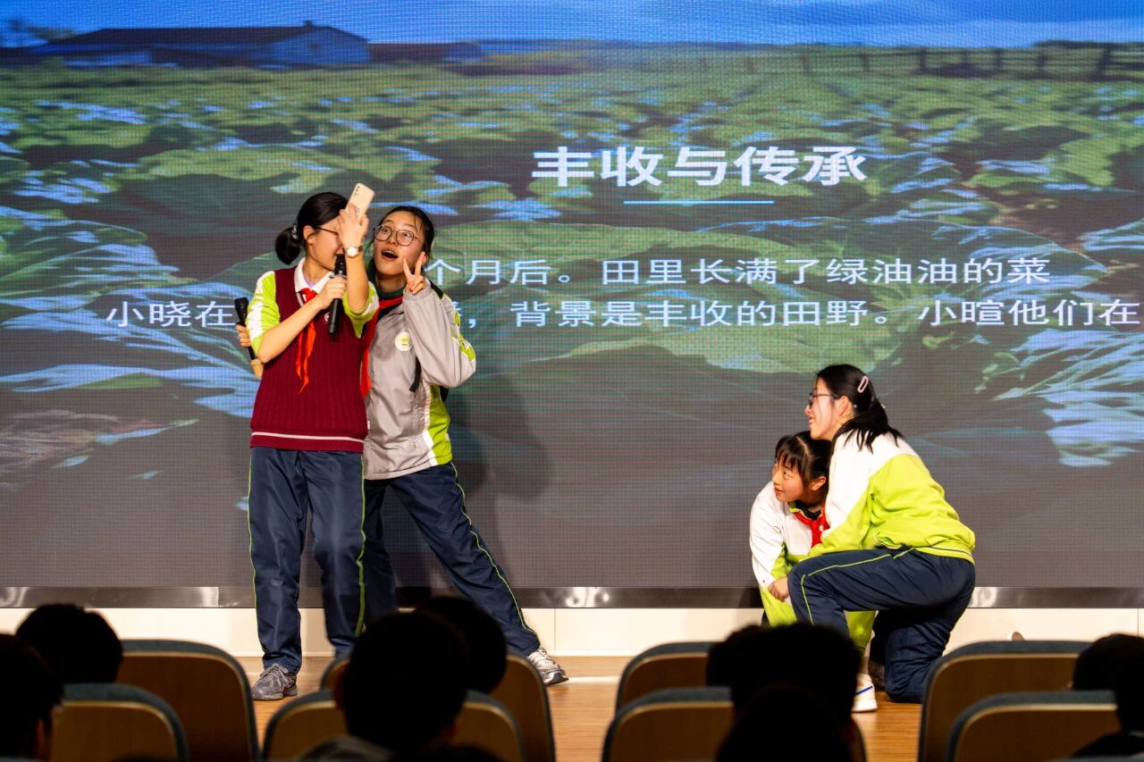 八1中队带来的《智慧农田守护者》,以紧张剧情展现了科技如何助力农业可持续发展;八2中队呈现的《AI谣言终结者》与《咖啡厅环保小管家》,分别以幽默方式破除科技谣言、彰显科技赋能环保的效能;八3中队的《绿植再生计划》,巧妙结合AI识别与废旧物改造,演绎资源循环利用;八4中队的《智能管家“翻车”记》在趣事中深刻点明“科技是工具,人才是主人”;八5中队从环保出发,通过创意研发,诠释了“知行合一”的实践理念;八6中队的情景剧生动诠释了科技赋能成长,以及学校“担当责任,自主力行”的办学理念。