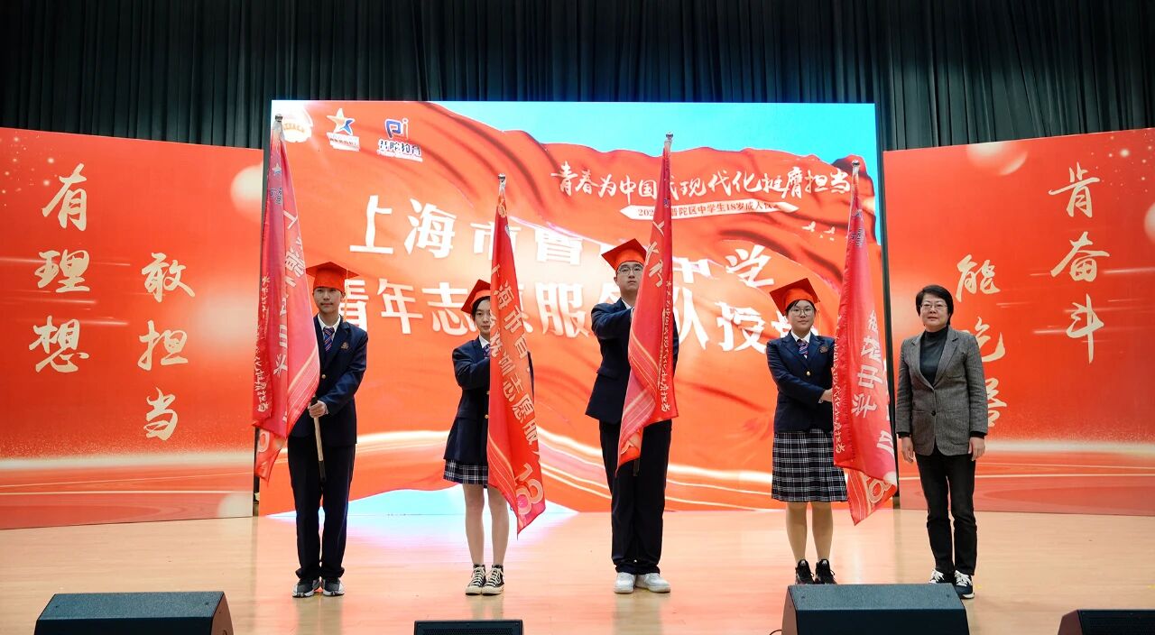 青春不仅是梦想的舞台,更是奉献的起点。上海市曹杨中学作为上海市首所特色普通高中,紧跟时代步伐,与时俱进地开发公益服务项目,成立了上海市曹杨中学“GREEN.AI志愿服务队”“云知气象观测志愿服务队”“绿色能源科技志愿服务队”和“H2O水科技志愿服务队”四支队伍。活动现场,为志愿服务队授旗,并为志愿服务队队员代表颁发了聘书,鼓励同学们在志愿服务中展现青春风采,贡献青春力量。志愿服务队代表发出倡议,号召同学们积极投身志愿服务,用实际行动诠释青春的价值和意义。