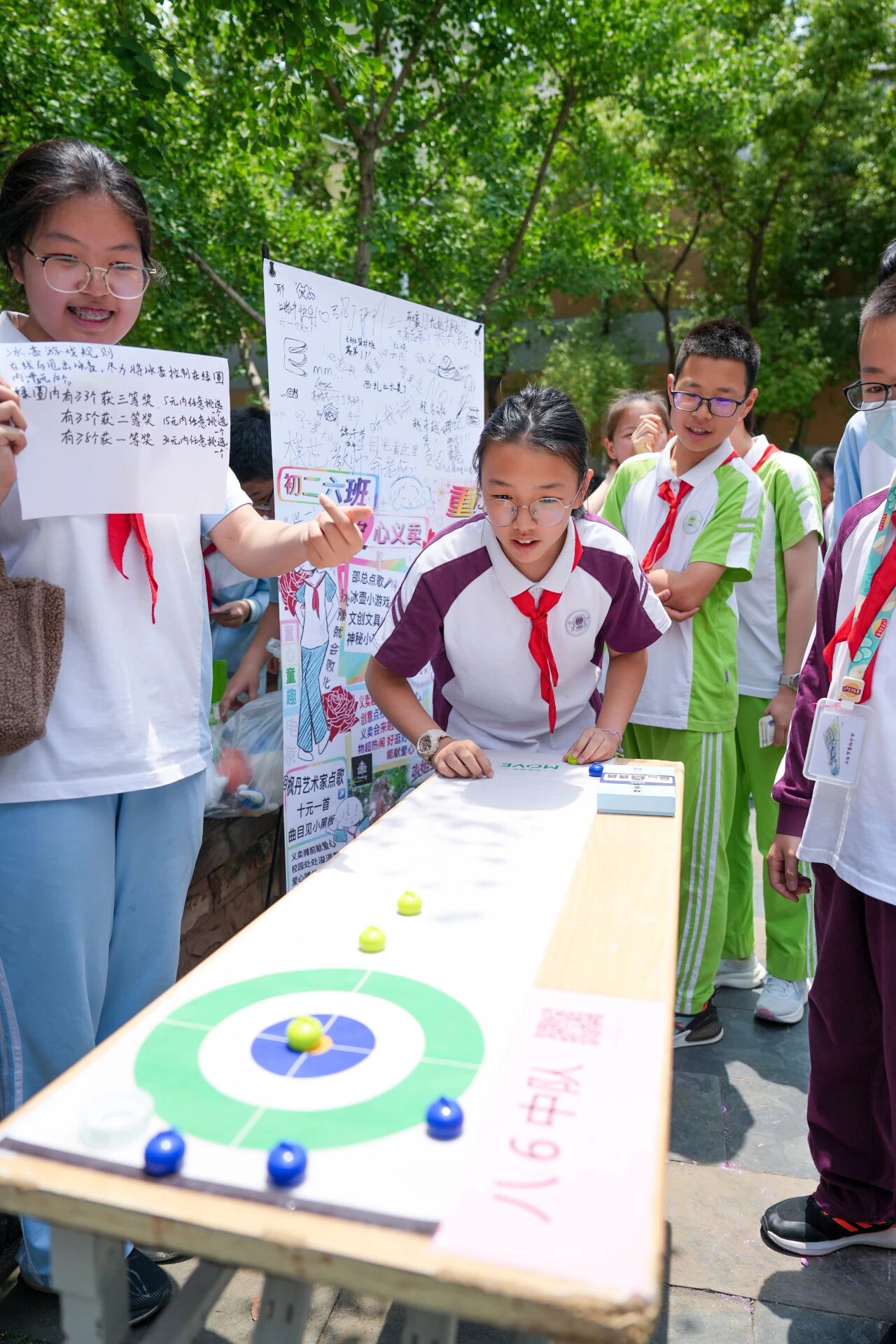 活动现场热闹非凡,每个摊位精心准备了海报,摊位上摆满琳琅满目的义卖品。结合端午这一传统节日,他们手工制作艾草香囊、编出精致的端午彩绳、做出独一无二的漆扇,穿上美丽的汉服。有的摊位别出心裁,设置了冰壶、投球、套圈等小游戏,还有吉他现场演奏,吸引力了不少师生驻足。